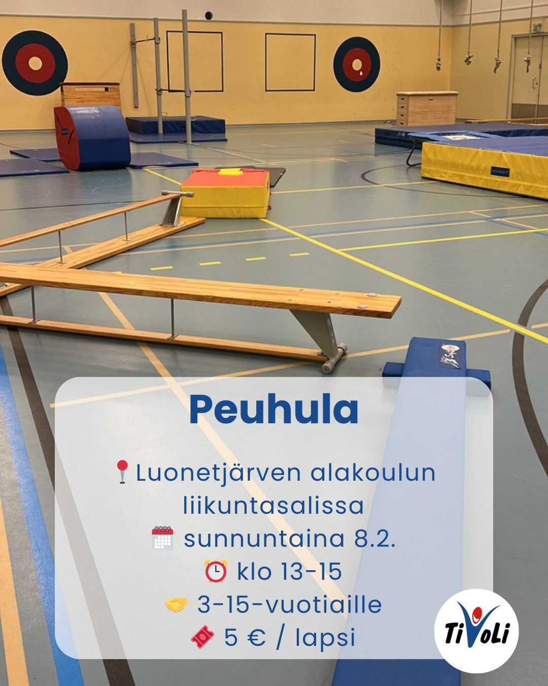 Tikkakosken Voimistelu- ja Liikuntaseura, TiVoLi ry, tarjoaa kaikenikäisille jäsenilleen monipuolista, laadukasta ja mukavaa sekä terveyttä ja hyvinvointia edistävää liikuntaa.