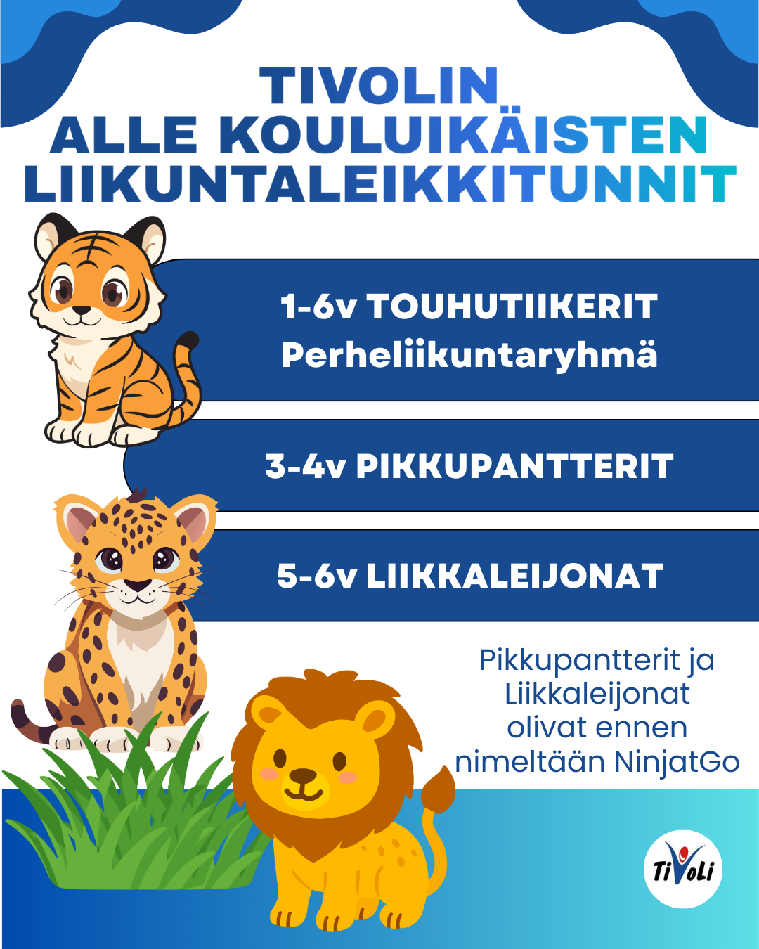 Jyväskylän kaupungin LiikuntaVeturi -ryhmä Touhutiikerit tarjoaa monipuolista liikkumista yli 1-vuotiaille yhdessä vanhemman tai muun tutun aikuisen kanssa. Tunnit sisältävät perusliikuntataitojen harjoittelua, oman kehon hallintaa ja aktiivista yhteistä touhuamista leikkien, musiikin sekä välineiden avulla. Tunneilla päästään purkamaan sekä pienten tiikereiden että myös aikuisten energiaa. Harjoittelussa pyritään ottamaan huomioon sekä pienemmät että isommat tiikerit niin, että jokainen löytää oman taitotasonsa mukaista touhua.